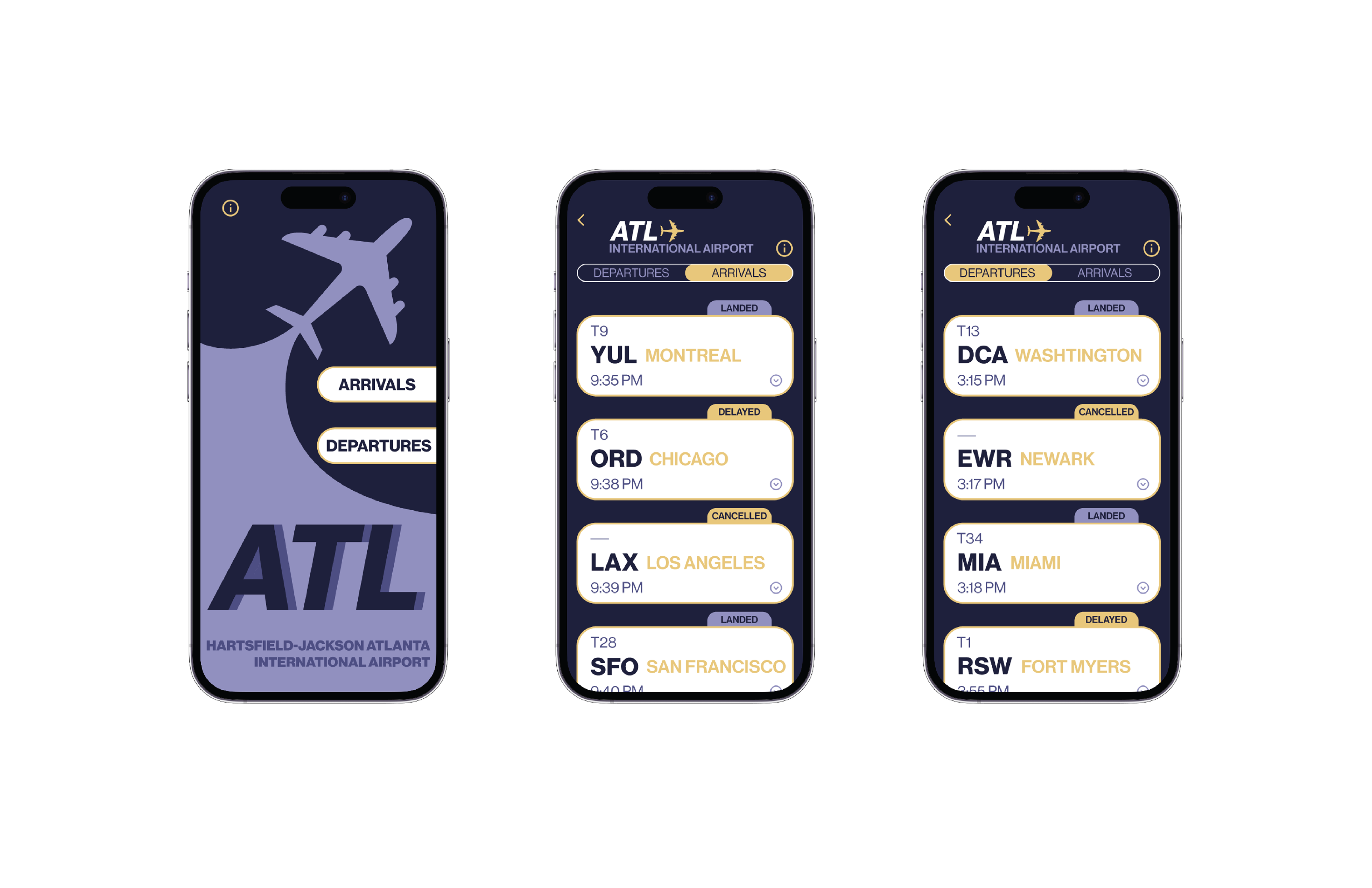 I created a flight information display system prototype to be viewed on the phone to communicate flight information to passengers in real-time. I developed a visual/typographic system that implements an information system for a phone and transportation terminal.